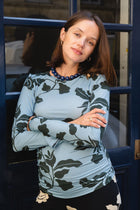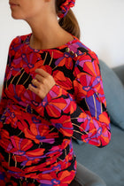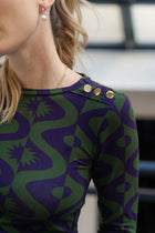 Le top Mona est le haut parfait pour mettre en valeur son ventre de femme enceinte. Avec une coupe ajustée et des manches légèrement évasées, il se porte en toutes circonstances. Il se marie parfaitement avec le pantalon Andrea du même imprimé pour un effet total look seventies. Il se porte également très facilement avec votre jean de grossesse ou votre legging de grossesse.