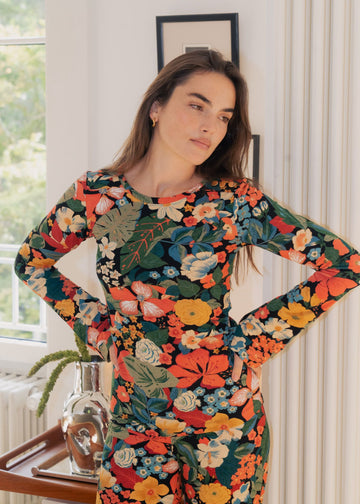 Le top Mona est le haut parfait qui se porte avec tous vos jeans, pantalons ou jupes. Il apporte une touche de féminité et d’allure à votre tenue. Avec une coupe ajustée et des manches légèrement évasées, il se porte en toutes circonstances, aussi bien tous les jours que pour des occasions spéciales. Nous aimons tout particulièrement le combo top Mona/pantalon Andrea du même imprimé pour un effet combinaison jumpsuit.