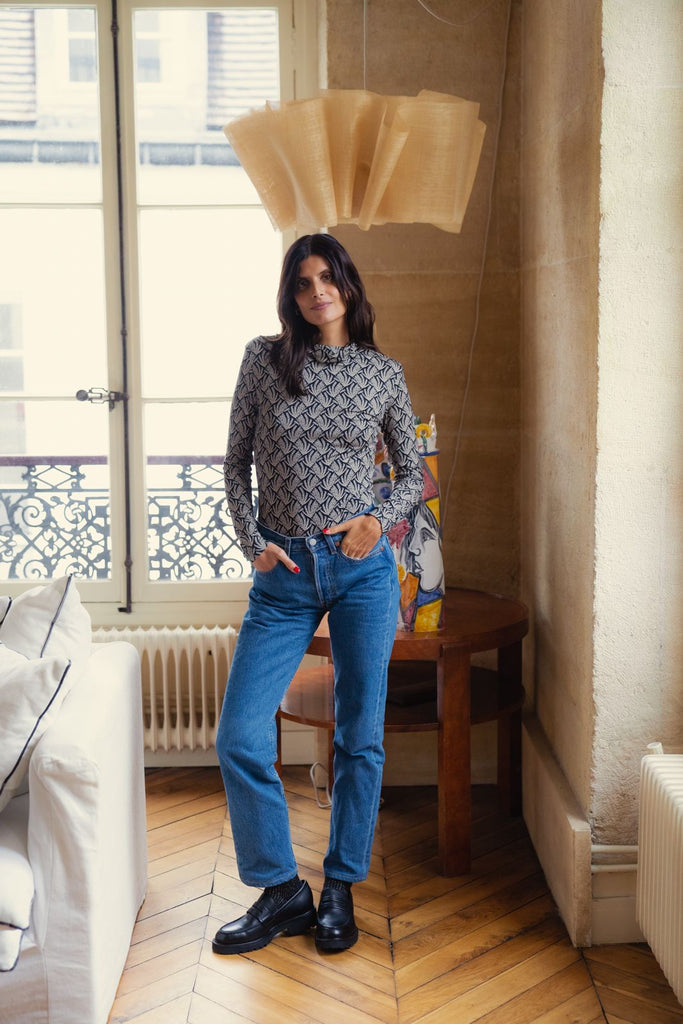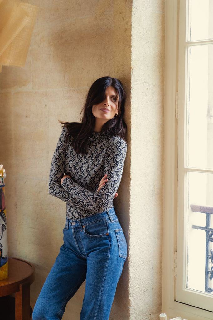 Le top Mathilda est l'indispensable de l'hiver. Il habillera chacune de vos tenues pour cette saison, un jean, un pantalon de costume ou une jolie jupe, c'est le top idéal à porter tout l'hiver. Il se marie parfaitement avec le pantalon Andrea du même imprimé pour un effet total look.