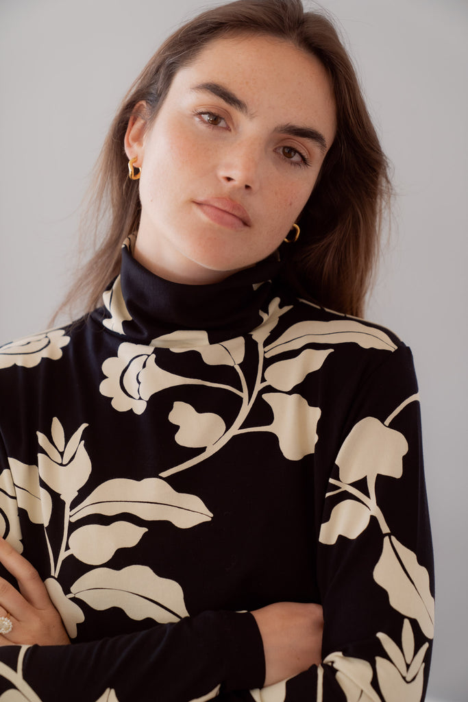 Le top Mathilda est l'indispensable de l'hiver. Il habillera chacune de vos tenues pour cette saison, un jean, un pantalon de costume ou une jolie jupe, c'est le top idéal à porter tout l'hiver. Il se marie parfaitement avec le pantalon Andrea du même imprimé pour un effet total look.