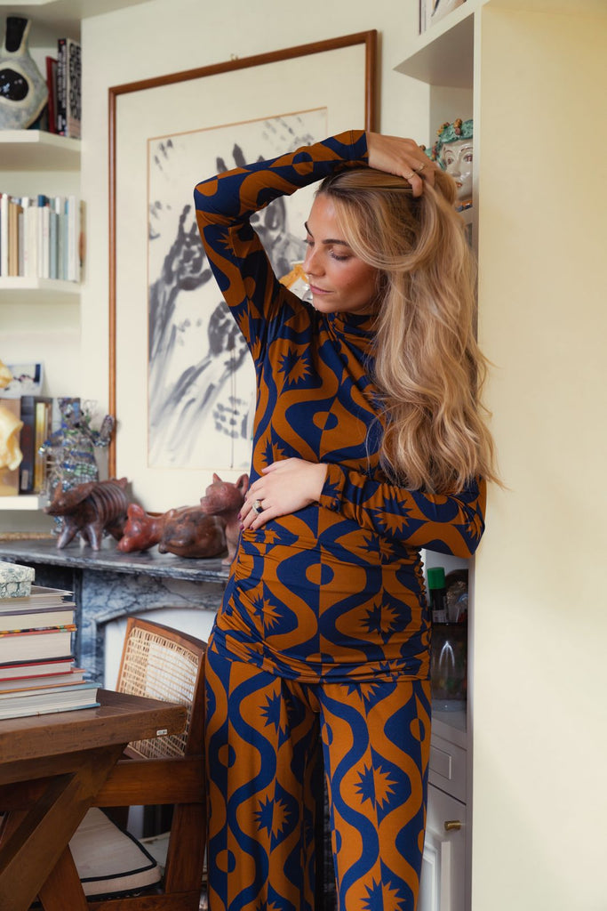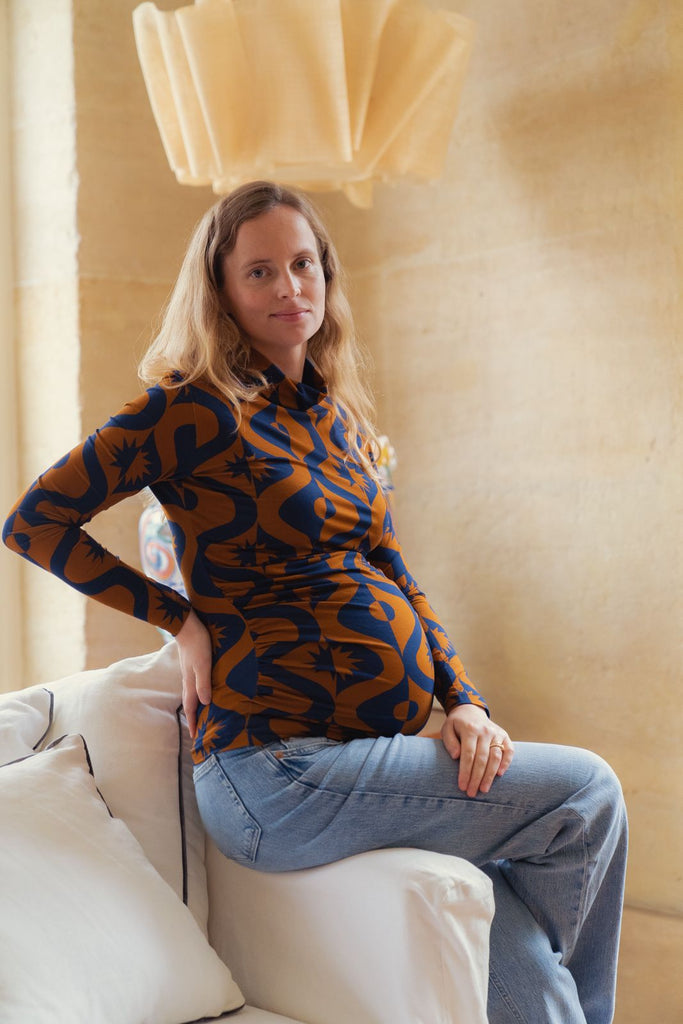 Le top Mathilda est l'indispensable de l'hiver. Il habillera chacune de vos tenues pour cette saison, un jean, un pantalon de costume ou une jolie jupe, c'est le top idéal à porter tout l'hiver. Il se marie parfaitement avec le pantalon Andrea du même imprimé pour un effet total look.