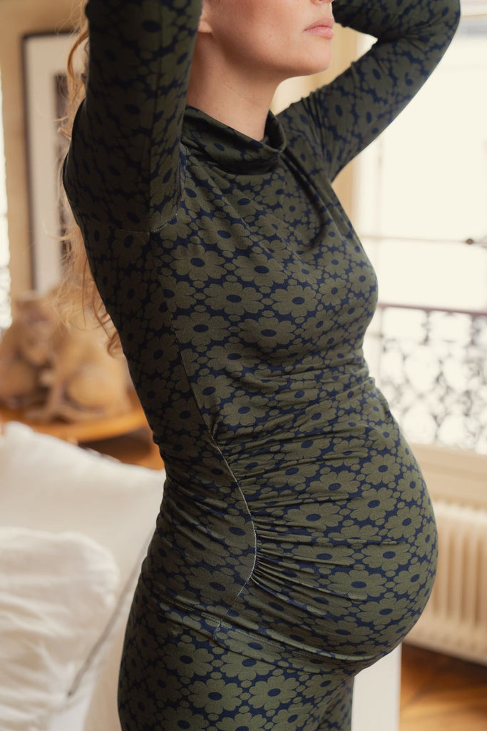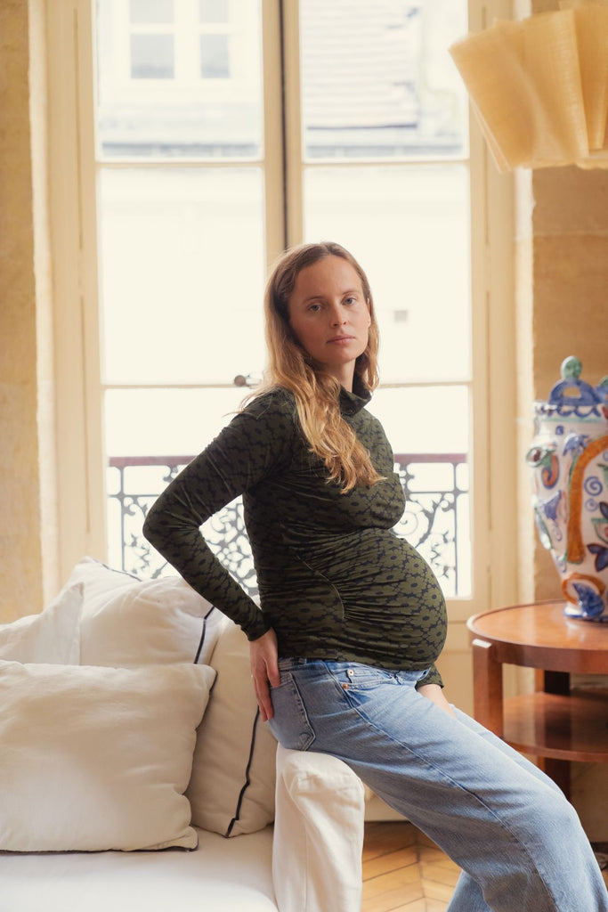 - Fronces de 15 cm sur les 2 côtés en bas du devant du haut, ce qui permet au top d'épouser parfaitement la forme du ventre.