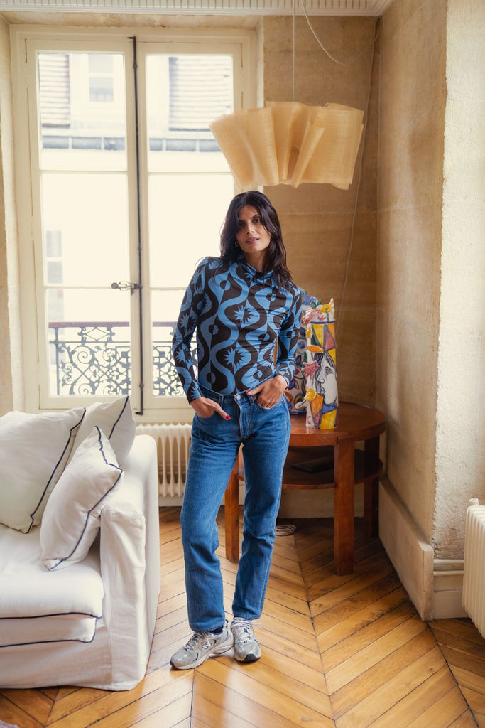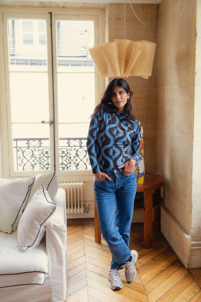 Le top Mathilda est l'indispensable de l'hiver. Il habillera chacune de vos tenues pour cette saison, un jean, un pantalon de costume ou une jolie jupe, c'est le top idéal à porter tout l'hiver. Il se marie parfaitement avec le pantalon Andrea du même imprimé pour un effet total look.