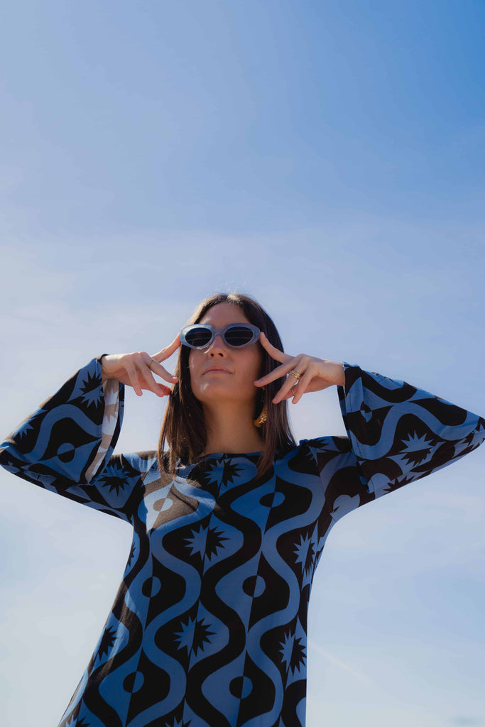 - Manches longues forme trapèze évasées (inspiration année 60).