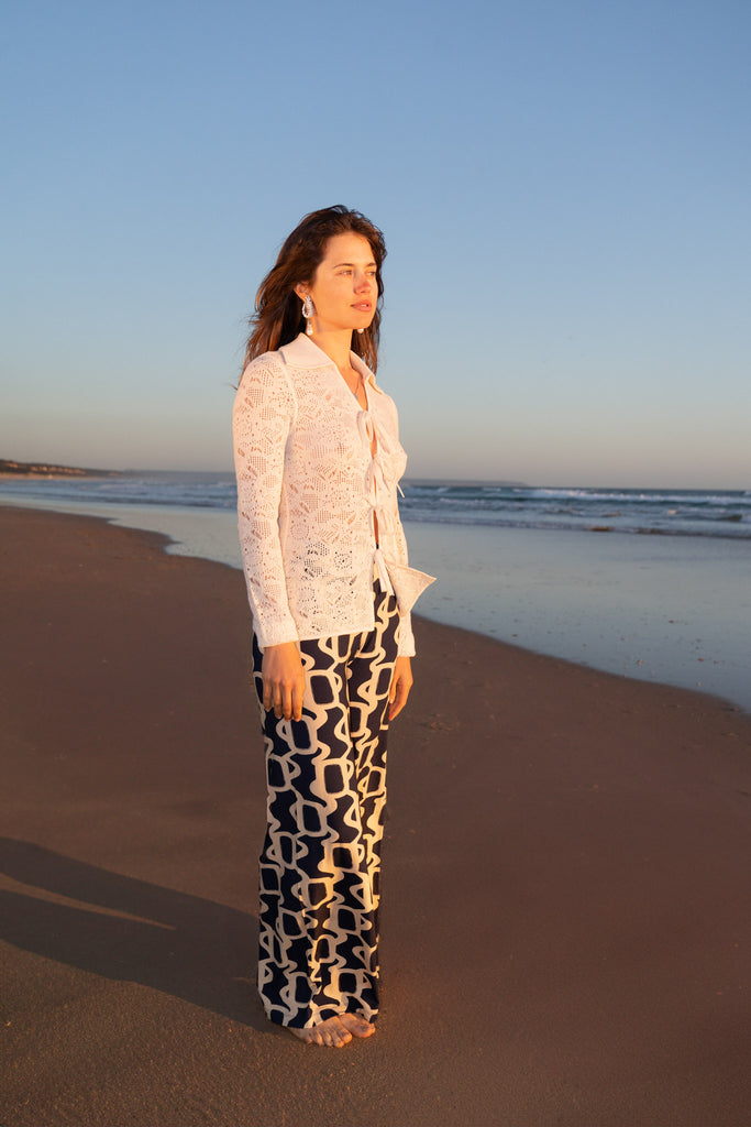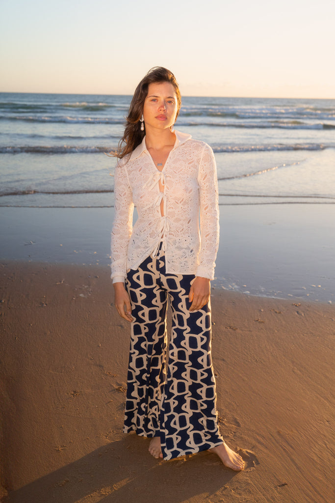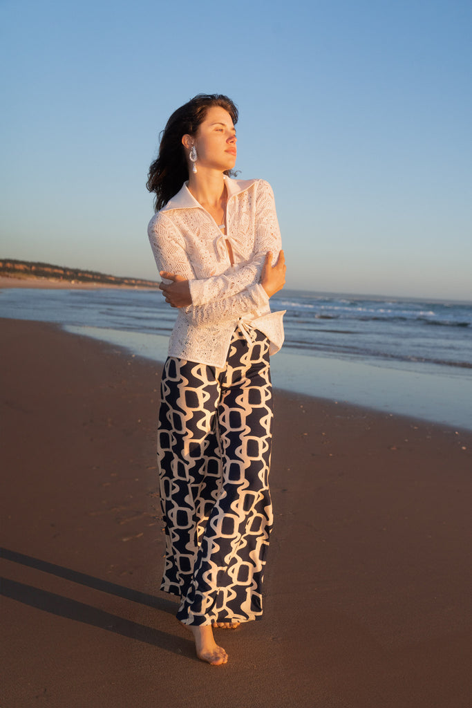 Le pantalon Andrea est tout simplement l’essentiel de votre dressing, été comme hiver. La matière, en jersey fluide et doux, est ultraconfortable. Il se porte aussi facilement avec un blazer pour aller au bureau ou bien avec une jolie maille et des baskets pour un look plus décontracté. Nous aimons tout particulièrement le combo pantalon Andrea/ top Mona du même imprimé pour un effet total look seventies. Le pantalon idéal pour être chic et cosy !